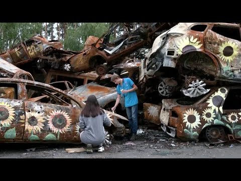 Artists from Ukraine and the U.S. are transforming a heap of burnt-out cars destroyed in the early days