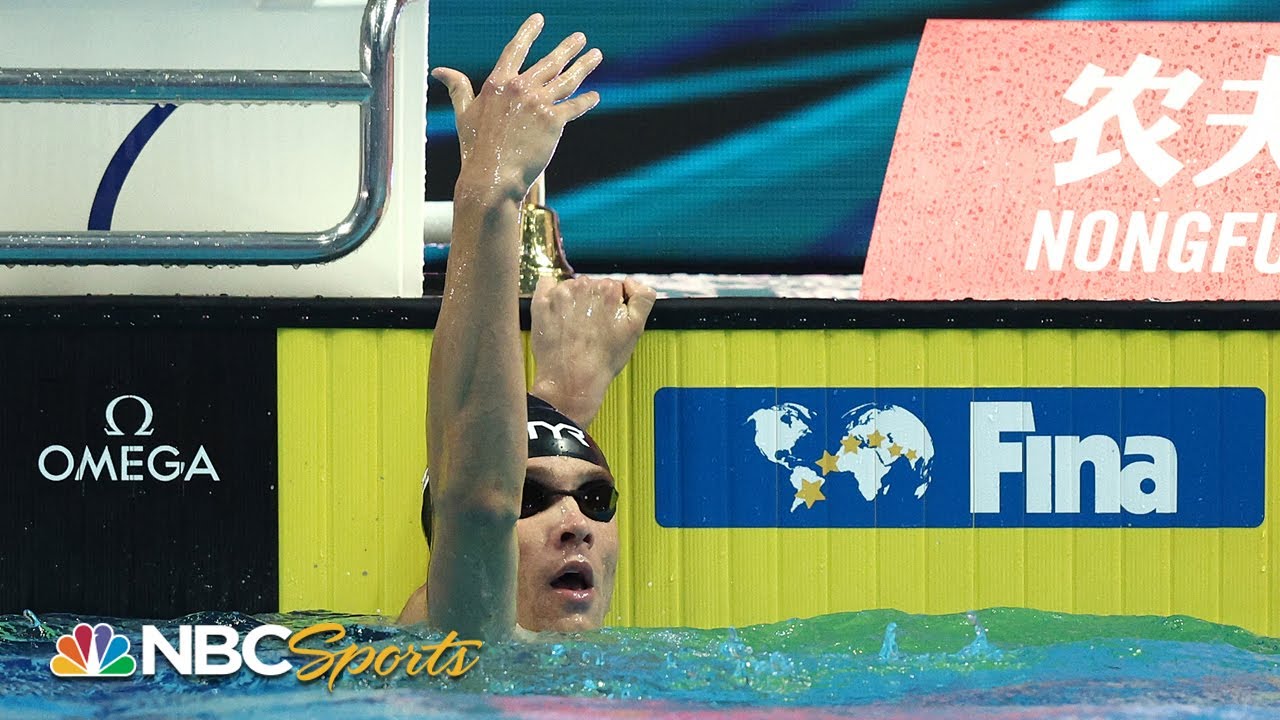 Bobby Finke comes back from fourth place to the top of the podium, breaking his American record to